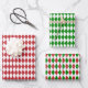 Feuille De Papier Cadeau Arlequin rouge, vert et blanc