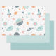 Coordinated wrapping paper set features an intergalactic space sheet, a solid pale green sheet and a darker green with white polka dots sheet that both coordinate with the space one. You can use them individually a create a stack of gifts using all three. They match the entire Astronaut Teddy Bear in Space Baby Shower Collection, so be sure to browse through the entire collection.