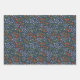 Papier d'emballage de vacances en rouge, blanc et bleu avec trois motifs mixtes : fleurs blanches, verdure et baies rouges contre un arrière - plan bleu foncé ; rayures rouges et blanches ; et plaid en bleu, blanc, vert et rouge.