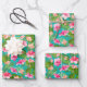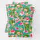 Trois feuilles de papier d'emballage présentent des fleurs d'hibiscus tropicaux sur un arrière - plan turquoise (ou toute couleur que vous choisissez). PLUS de couleurs dans notre magasin.