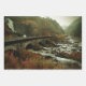 Envelopper le papier avec une photo nature. Moody et beau paysage. Un pont de pierre isolé au bord d'une rivière animée avec cascades, forêts et montagnes entourant la région.