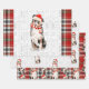 Un adorable chien berger australien est prêt pour la saison des Fêtes avec son écharpe d'hiver rayée rouge et blanche et son chapeau de Père Noël, ce qui fait de ce chien un vrai fashionista. Ce mignon chien de Noël est associé à une impression plaid dans les tons rouge et vert saisonnier sur cet ensemble d'enveloppement cadeau pour l'amoureux des chiens.
