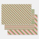 Ces modèles amusants de feuilles de papier d'emballage présentent des motifs rayés de style Noël avec des couleurs comme le rouge, le blanc et le vert. Des feuilles de papier d'emballage festives comme celles-ci pourraient être utilisées pour préparer des cadeaux donnés pour célébrer Noël.