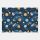 Feuille De Papier Cadeau Blue Outer Space Planets Seamless Pattern