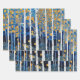 Beau papier de tissu de boho d'inspiration klimt aritique pour emballage cadeau. Belle vue estivale d'été bleu et or brillant avec des trembles du Colorado blancs et or.