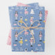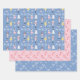 Ce papier d'emballage de Noël Nutcracker présente 3 motifs fantaisistes séparés dans un thème rose, jaune et bleu. Feuille 1 : un motif de bals et de noix de muscade; Feuille 2 : cannes à bonbons et flocons de neige; Feuille 3 : Fa la motif en bleu et blanc. Un cadeau unique et adorable pour les vacances !