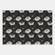Feuille De Papier Cadeau Chat Noir Borné De Fleurs Blanches