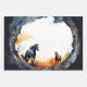Feuille De Papier Cadeau Chevaux d'aquarelle et silhouette couchée