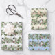 Ce motif de Noël mignon présente des guirlandes de feuilles saints, des baies et des sprigs de pin, avec de mignons petits poulets perchés au milieu des branches. Les 3 feuilles de papier d'emballage ont chacune un arrière - plan de couleur différente : blanc, crème et bleu clair.
