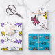 Chiens et os violets et jaunes, roses foncées et jaunes, émeraude et brun en style Graffiti. Conception sur papier d'emballage (jeu de 3). Disponible en rouleau. N'oubliez pas les produits assortis : ruban, sacs cadeaux et plus encore.