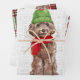 Un adorable chien de Cockapo brun est prêt pour la saison des fêtes un foulard rouge et un casquette d'hiver vert, ce qui fait de ce chien un vrai fashionista. Ce mignon chien de Noël est associé à une impression plaid dans les tons rouge, vert et blanc saisonniers sur cet ensemble d'enveloppement cadeau pour l'amoureux des chiens.