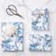 Feuille De Papier Cadeau Chinoiserie Floral Oiseau Dusty Bleu Blanc Découpa