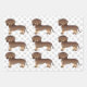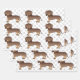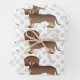 Dessin original de Destei illustrant un mignon cheveu chocolat brun et robe tan chien de race Dachshund. Le dessin du chien est placé neuf fois sur chaque feuille. L'arrière - plan a un motif d'empreintes de pattes de chien gris.