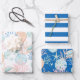 Feuille De Papier Cadeau Coastère Bleu Aquarelle Coquille & Motif brut