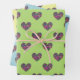 De jolis coeurs colorés sur des arrière - plans pastel ornent nos 3 feuilles de papier d'emballage. Par Monkey Business Graphic Design. 2021