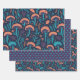 Feuilles de papier cool cool avec un design unique avec un Motif botanique de champignons de bois coloré et une feuille avec pois turquoises sur un arrière - plan violet. La motif est parfaite pour envelopper de mignons cadeaux pour les amoureux de la nature.