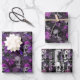 Fleur violette et papier d'emballage au crâne d'un gothique magnifique. Vous obtenez 3 designs différents dans ce paquet cadeau de haute qualité.