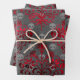 Feuille De Papier Cadeau Crânes et Damas rouges sur gris