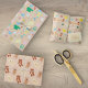These cute baby stuff/teddy bears wrapping paper sheets feature an illustration of baby stuff – diapers, diaper cream, hand sanitiser, changing mat, diaper sacks, sun hat and teddy bears with space to customize your and your beautiful baby's name. Wrap them around presents for a baby shower, birthday party or 1st birthday gift. Each colourful gender neutral design is on a beige background.