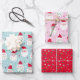 Feuille De Papier Cadeau Cute Santas avec barbe festive bleu et rose