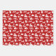 Festive vacances Dachshund chien silhouette motifs en rouge et blanc avec une audacieuse feuille d'accent rayé noir et blanc pour compléter le jeu de papier enveloppant.