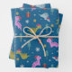 Feuille De Papier Cadeau Dinosaure de Noël bleu