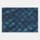 Trois feuilles de papier d'emballage ensemble avec élégant bleu marine art déco et des motifs métalliques.