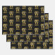 Feuille De Papier Cadeau Élégant Monogramme noir & or Script moderne