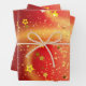 Feuille De Papier Cadeau Étoiles d'or étincelles et lumière sur rouge