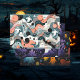 Trois styles différents de motifs fantomatiques mettant en vedette nos amis hantants. L'un est saumon et turquoise avec des chauves-souris et des fantômes. L'une montre des fantômes hantant une forêt violette et l'autre des fantômes souriants de plusieurs couleurs.