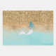 Feuille De Papier Cadeau Fille Aqua Aquarelle or Parties scintillant sirène