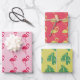 Des motifs flamands roses de néon brillants et des motifs de feuilles tropicales rendent ces feuilles de papier d'emballage amusantes pour les fêtes et les célébrations.