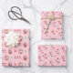 Feuille De Papier Cadeau Flamingo de Noël sur rose