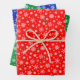 Flammes de neige diverses formes rouge vert bleu élégant Feuilles de papier à envelopper. (Pour la feuille #3, la couleur bleue de l'arrière - plan est légèrement inégale - c'est-à-dire qu'elle fait partie de la conception, et non de l'erreur d'impression. )