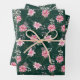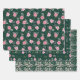 Feuille De Papier Cadeau Fleurs de Poinsététie rose sur Vert foncé