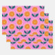 Feuille De Papier Cadeau Fleurs scandinaves mignonnes en rose et orange