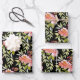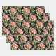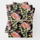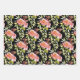 Les feuilles de papier d'emballage noir présentent de belles fleurs aquarelles roses et rouges et une verdure élégante. ARTICLES CORRESPONDANTS dans notre magasin.