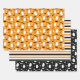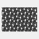 Un ensemble de feuilles de papier d'emballage pour Halloween avec trois motifs mignons : l'un plein de fantômes, chauves-souris et os contre un arrière - plan orange, l'autre avec le même motif mais contre un arrière - plan noir, et une feuille de papier de rayures en orange, blanc et noir.