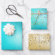 Feuille De Papier Cadeau Gold Aqua Parties scintillant Turquoise étincelle