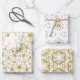 Ce design élégant, luxueux et unique présente des étoiles et des flocons de neige en faux or métallique jaune sur arrière - plan blanc. Ce papier d'emballage est un excellent ajout à votre célébration de Noël et du Nouvel An avec votre famille et vos amis.