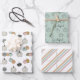 Trois feuilles plates de papier d'emballage : une citrouille pastel et une gourde, citrouilles et gourdes reconnaissants et des rayures pastel.