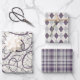 Cette collection de feuilles de papier d'emballage comprend trois motifs variés avec un thème gris violet et gris - motif de boucles entrelacées funky, motif Jacquard et motif plaid - par katz_d_zynes