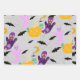 Ces feuilles de papier d'emballage d'Halloween fantaisistes présentent des couleurs et des fantômes d'Halloween non traditionnels, des toiles d'araignée, des champignons, des chauves-souris et des fleurs.