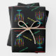Joyeux papier d'emballage Hanoukka. Ce design Happy Hanoukka noir mais coloré est orné d'une menorah colorée. Une façon parfaite d'envelopper votre cadeau Hanoukka cette Hanoukka!