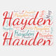 Hayden. Montrez et portez ce populaire beau prénom féminin conçu comme un nuage de mots coloré fait de lettrage à main horizontale et verticale dans différentes tailles et des couleurs fraîches adorables. Portez votre nom américain positif ou montrez au monde que vous aimez ou adorez. Merch avec cette oeuvre d'art en texte souple est un grand cadeau, pas seulement dans le mois de l'histoire des femmes, ou cadeau d'anniversaire.