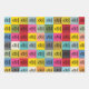 Comprend trois motifs HAPPY différents. 1) le multicarré OG qui est la tête Robot d'origine répétée sur le dessus de différents carrés de couleur. 2) Le motif du 10e anniversaire avec des variations de mots et de robots. 3) HEUREUX en japonais. Ce papier d'emballage est parfait pour toute occasion qui pourrait utiliser un peu HAPPY.