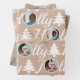 Créez votre propre papier d'emballage de Noël personnalisé avec ce modèle photo collage dans les neutres Holly Jolly de bronze, brun et blanc. Téléchargez vos photos dans les modèles ronds où ils deviennent le O dans le motif de typographie HOLLY et JOLLY, un en blanc sur un doux bronzage sablonneux et un dans les tons terre de brun sur un arrière - plan de taupe chaud. Parsemés parmi les mots d'art festif sont de simples arbres de Noël comme l'accent parfait des vacances. Le troisième design de l'emballage cadeau est un simple motif de typographie à répétition rempli de Holly Jolly et Deck The Halls alternant en blanc et un brun doux sur un arrière - plan de tan d'amande grillée. Ajoutez votre jeu d'emballage cadeau de vacances avec cette feuille de papier d'emballage de Noël sur mesure, composée de trois modèles assortis dans des tons neutres de terre naturelle et vos photos personnalisées pour un affichage unique et élégant sous votre arbre de vacances.