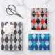 Feuille De Papier Cadeau Jacquard Motif gris rouge et bleu