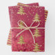 Feuille De Papier Cadeau Joli Arbres de Noël Rouge Or