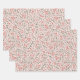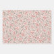 Ferme campagne rose vif, feuillage rouge et vert foncé, couronne, feuilles, verdure, motif rustique mignon draps de papier cadeau de vacances. Lot de 3. Idéal pour Noël et les fêtes.